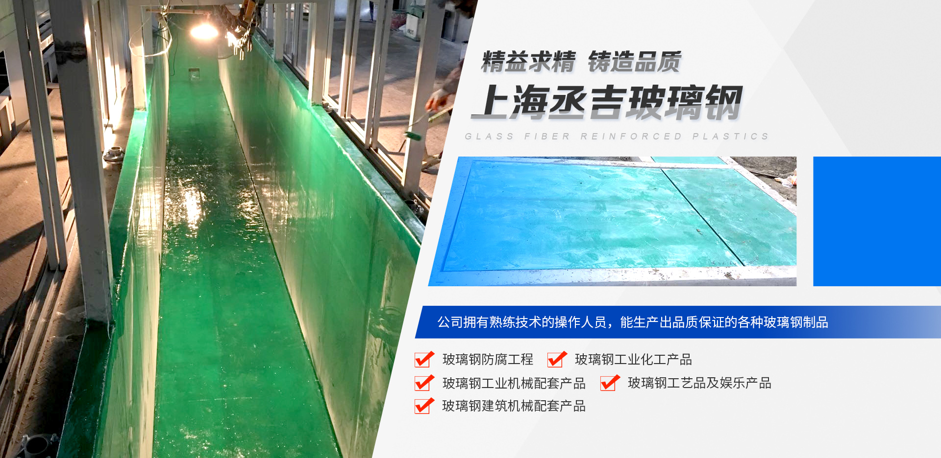 上海丞吉玻璃鋼有限公司,是一家集合玻璃鋼制品設(shè)計、制作、現(xiàn)場組織施工、研發(fā)、銷售、網(wǎng)購,為一體的綜合型服務(wù)公司。公司多年來專業(yè)銷售與生產(chǎn)大型雕塑景觀、大型兒童游樂設(shè)施、冷卻塔、槽罐、玻璃鋼船、室內(nèi)裝飾物、汽車護甲保險杠大包圍及底盤、化工烘料托盤、防腐工程、風管、水槽、化糞池、花盆,垃圾桶、建筑材料等各種玻璃鋼產(chǎn)品(FRP),公司配備專業(yè)設(shè)計師(兼職),為廣大客戶設(shè)計模具、查看圖紙、打樣。并配備具有熟練技術(shù)的操作人員,生產(chǎn)出品質(zhì)保證的各種玻璃鋼制品。